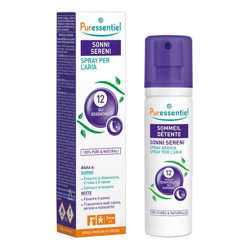 Puressentiel Sonni SereniSPRAY aiuta a trascorrere notti calme, serene e ristoratrici. Modalità d'uso: - la sera prima di andare a dormire: vaporizzare ai quattro angoli della camera da letto + uno spruzzo su un fazzoletto appoggiato sul cuscino. - Un’ulteriore vaporizzazione in caso di risveglio notturno e problematiche nella riconciliazione del sonno. - Ogni momento della giornata: spruzzare nella stanza per distendere e calmare lo stress quotidiano. Caratteristiche: i 12 oli essenziali hanno delle proprietà atte a favorire in maniera naturale la distentione, il relax ed il sonno per trascorrere notti calme, serene e ristorat...